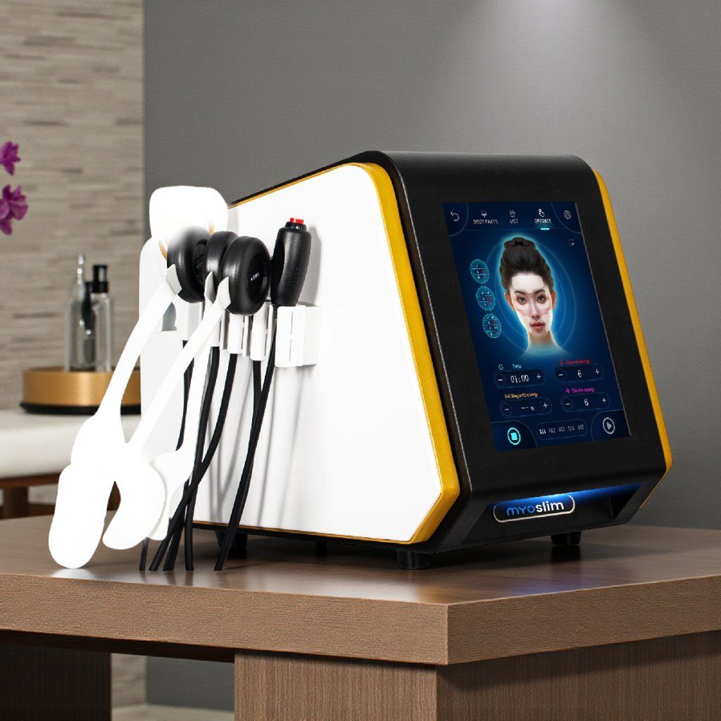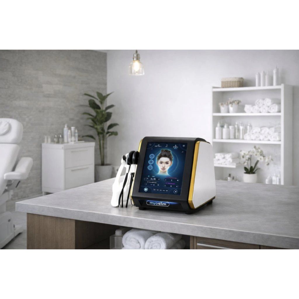 Das Myoslim Face Gold ist ein professionelles EMS Gesichtslifting Gerät mit RF Technologie, das speziell für nicht-invasive Anti-Aging Behandlungen im Kosmetikstudio entwickelt wurde.