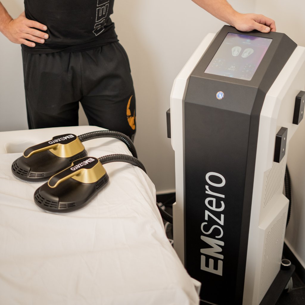 - Všechny naše stroje jsou vybaveny extra funkcí Radiofrekvence (RF), která kromě jiného zesiluje stahovací účinek elektromagnetických impulzů na samotné svaly